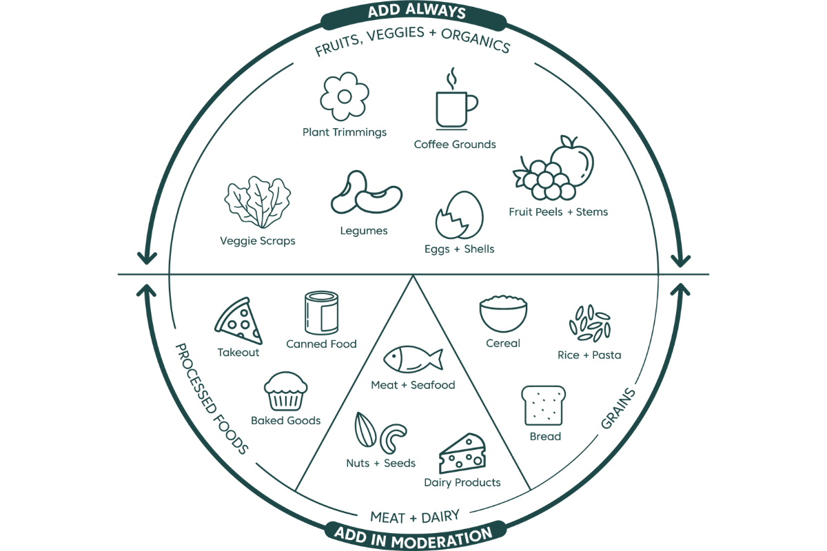 Take a peek at our handy checklist showcasing the foods and eco-friendly products to use in your Lomi.