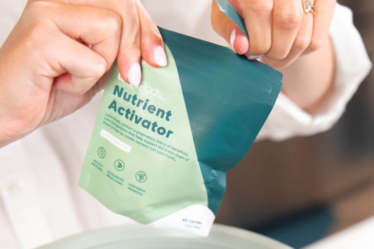 LomiPods add microorganisms to help breakdown of food scraps and reduces odors.