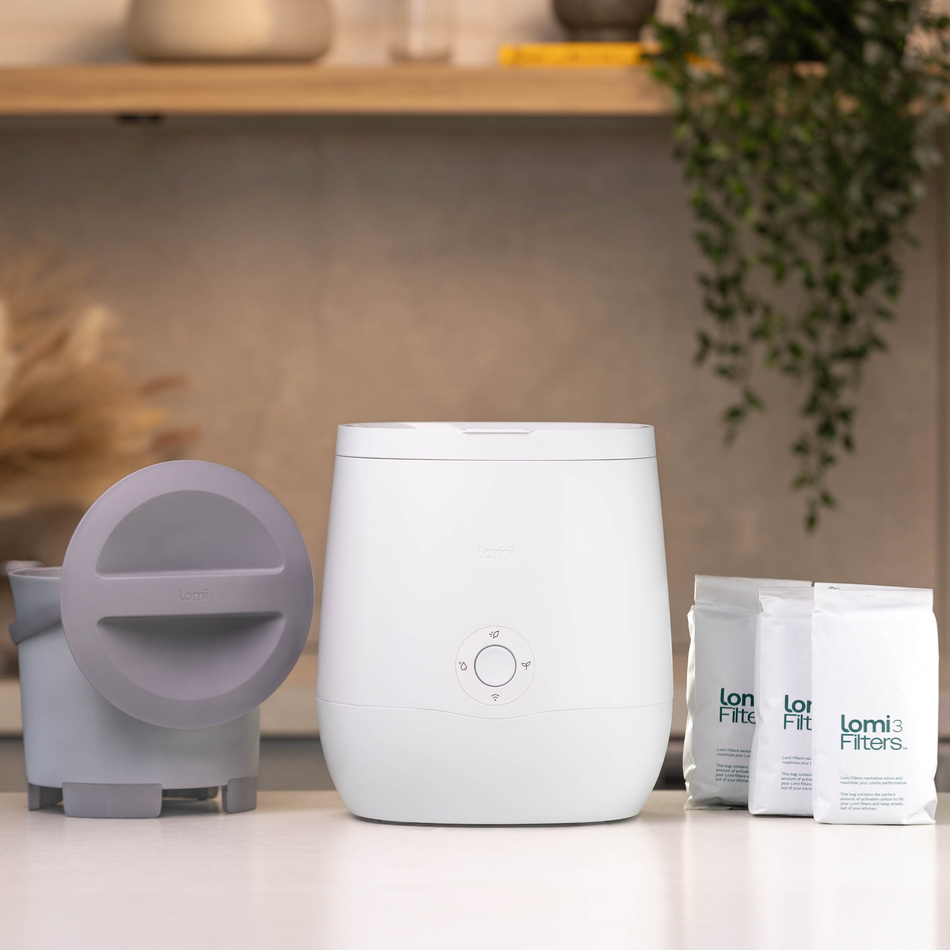Stinky trash is gone forever thanks to Lomi's charcoal filter system that absorbs all the odors from food waste.