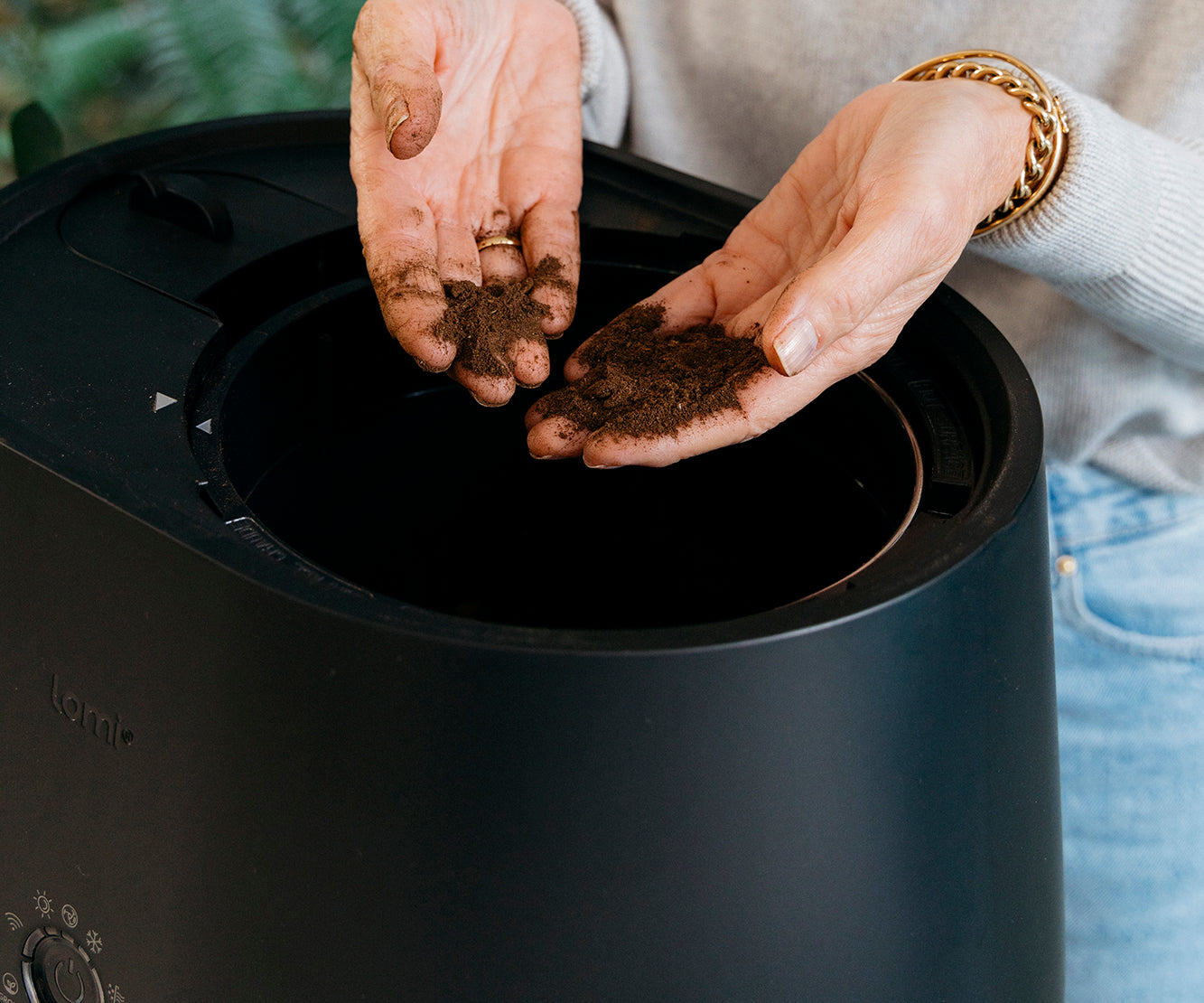 Add a scoop of Lomi Blends and a LomiPod in with your food scraps to add nutrients to amp up your Lomi Earth.